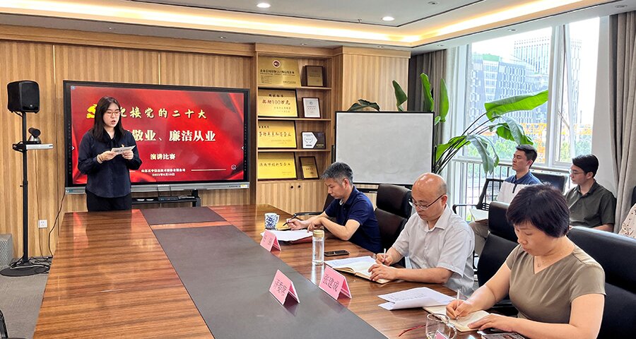 6月10日下午,伟德bv1946官网举办“爱岗敬业 廉洁从业”演讲比赛。评委团由党支部书记兼董事长张建成、党支部副书记兼副总经理马晓红、公司副总经理任强组成。党支部纪检委员宋丽华作为比赛监督员进行分数统计,共有来自公司各部门的8名选手参赛。