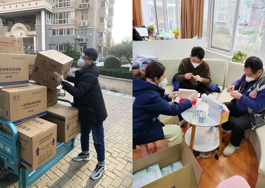随后在社区防疫工作人员的安排下,四名党员同志在做好自我防护基础上,参与了防疫物资卸货搬运,核酸检测采样器粘贴条码等工作,虽然室外温度比较低,但是他们工作起来却是积极热情、耐心细致。