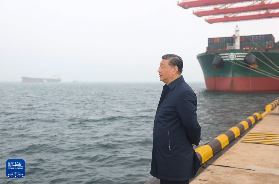 5月22日至24日,中共中央总书记、国家主席、中央军委主席习近平在山东考察。这是22日下午,习近平在日照港考察。新华社记者鞠鹏摄