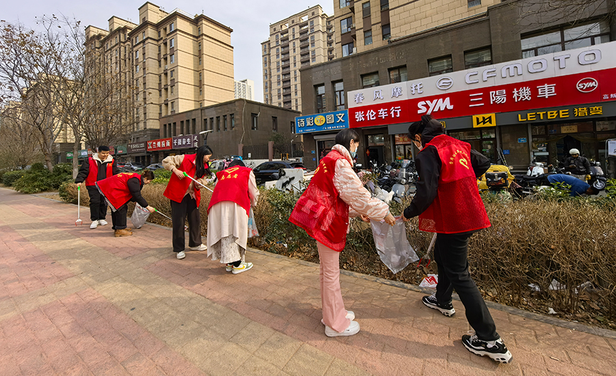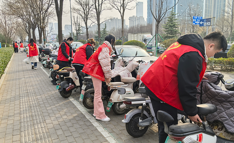 齐心清洁,扮靓社区。全体党员在社区工作人员的引导下,重点对社区周边的公共区域进行卫生清理,确保不留盲区,不漏死角,对居民乱扔垃圾等不文明行为进行劝导,引导大家共创干净温馨的生活环境,此外,将道路两侧乱停放的电动自行车进行规范整齐码放,在大家共同努力下,社区环境得到了明显改善。