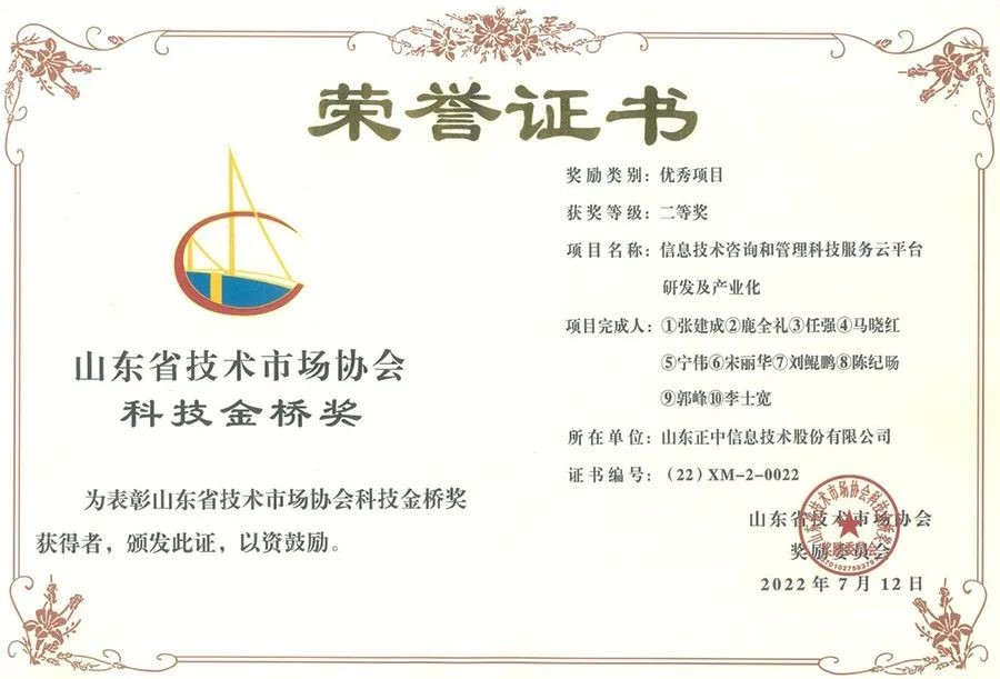 8月11日,2022年度山东省技术市场协会科技金桥奖表彰奖励大会暨泰山科技论坛在淄博高青举行。伟德bv1946官网的“信息技术咨询和管理科技服务云平台研发及产业化”项目,荣获山东省科技金桥奖优秀项目二等奖。
